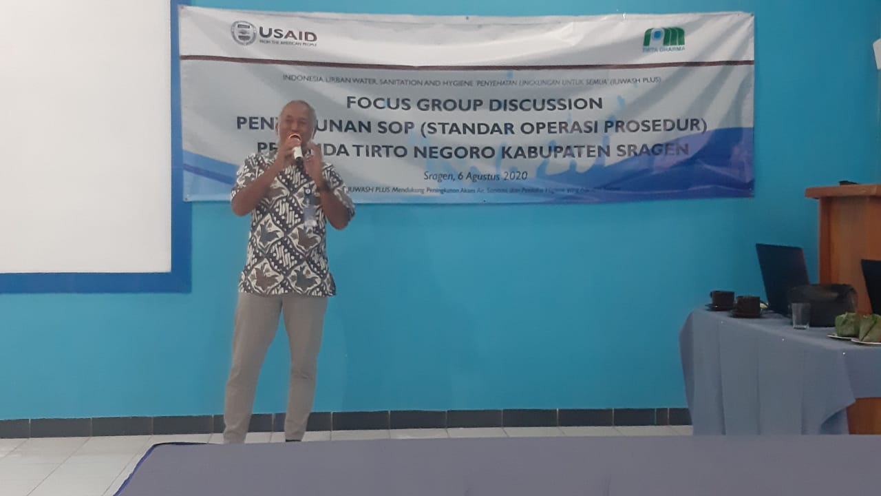 Perumda Air Minum Tirto Negoro Kabupaten Sragen yang didampingi oleh IUWASH PLUS mengadakan FGD Penyusunan SOP ( Standar Operasi Prosedur). Acara tersebut berlangsung selama 2 hari yaitu Rabu & Kamis tanggal 5-6 Agustus 2020.