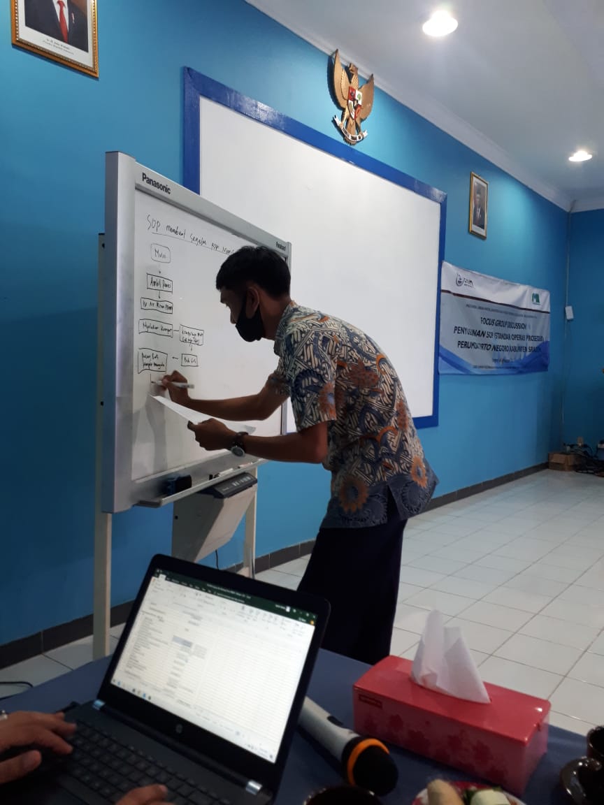 Dalam kegiatan ini dibahas secara jelas mulai dari definisi SOP sampai cara membuat SOP. Diharapkan setelah kegiatan FGD ini, team SOP Perumda Air Minum Tirto Negoro Kabupaten Sragen dapat menganalisa, menyusun, mengawal serta merevisi SOP sesuai dengan SOTK.