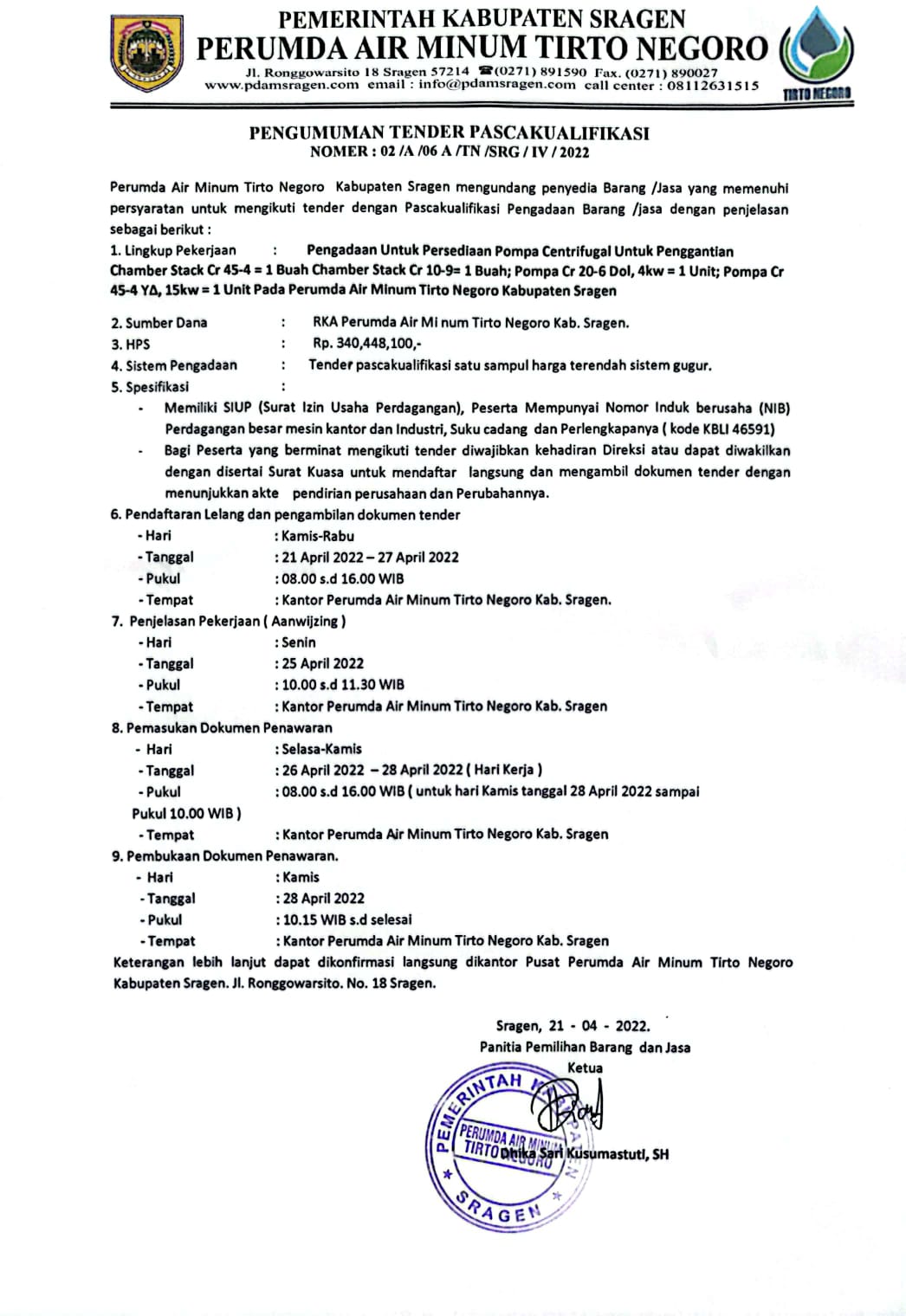 Pengadaan Untuk Persediaan Pompa Centrifugal Untuk Penggantian