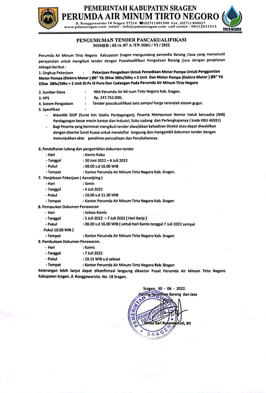Pekerjaan Pengadaan Untuk Persediaan Motor Pompa Untuk